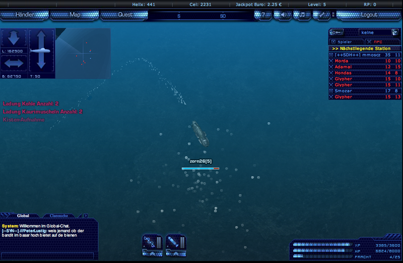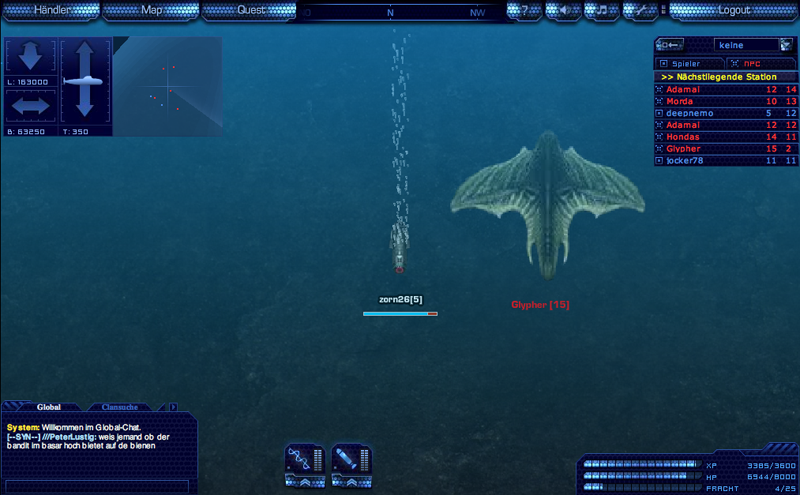Tauche ab in die faszinierende Unterwasserwelt von Deepolis!Willkommen bei Deepolis – dem actiongeladenen MMO unter den Browsergames! Hier wird das Auf- und Abtauchen in den 3D-Weiten der Ozeane zu einem echten Tiefenrausch. Kämpfe in spannenden Schlachten und steuere Dein U-Boot durch geheimnisvolle Unterwasserwelten und unbekannte Tiefen. Zeige taktisches Geschick an den Handelsstationen und beteilige Dich an Angriffen auf feindliche Fraktionen und Flotten.