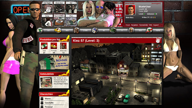 Kiez King entführt Dich in die schillernde Welt des Rotlichtmilieus. Errichte Nachtclubs und gründe Deine eigene Gang.